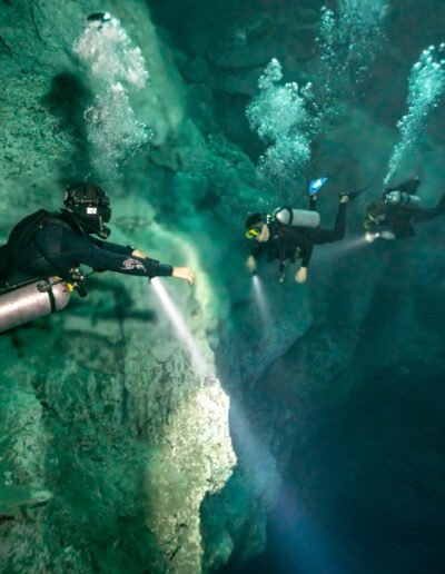 El buceo en cenotes en Playa del Carmen y la Ruta de los Cenotes es una experiencia mágica. Explorarás cavernas de aguas cristalinas, pasadizos subterráneos y asombrosas formaciones naturales únicas en el mundo. Buceadores de todo el planeta vienen a México por esta aventura.